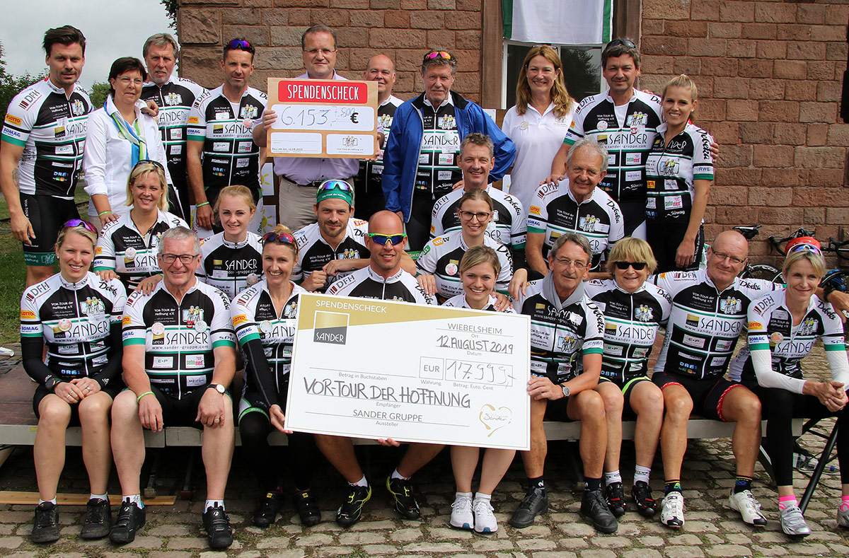 In die Pedale treten und helfen: Sander spendet 17.999 Euro an die „VOR-TOUR der Hoffnung“